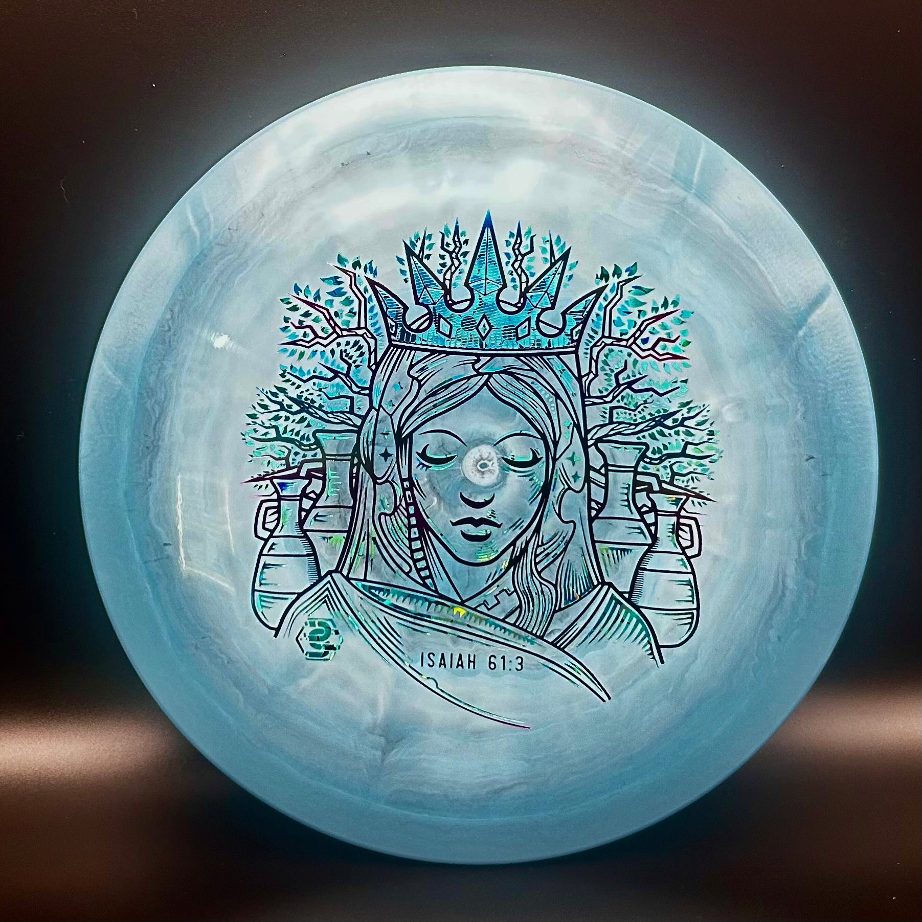 Graceful in flight yet grounded in truth — the Discraft Cicada captures the balance of faith and freedom. Designed for effortless glide and dependable control, it soars down the fairway like a spirit carried by the wind of His purpose. The Oak 61:3 stamp reminds us that while our flight may rise high, our roots remain in Christ.